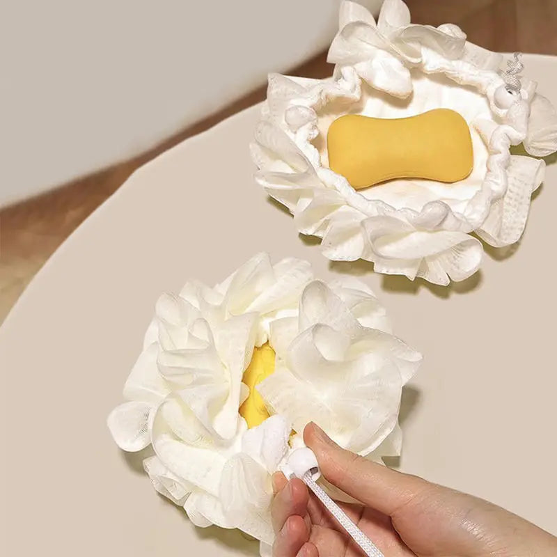 2-In-1 Bath Ball Towel Loofah With Drawstring Closure For Soap Soft Exfoliating Mesh Shower Sponge Skin Care Bathing Tool